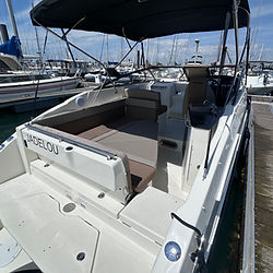 Offrez-vous une journée inoubliable en mer à bord du Quicksilver 805 Cruiser, un bateau haut de gamme alliant élégance, performance et confort exceptionnel. Propulsé par un puissant moteur Mercury V8 de 300 chevaux, ce day-cruiser moderne vous garantit des sensations fortes en toute sécurité, avec une tenue de mer irréprochable et une navigation fluide même à grande vitesse. Idéal pour une escapade en famille, une sortie entre amis ou une journée détente en couple, le 805 Cruiser peut accueillir jusqu’à 9 personnes à bord. Son cockpit spacieux et modulable se transforme en coin repas ou en grand bain de soleil selon vos envies. À l’intérieur, la cabine lumineuse offre 4 couchages confortables, un coin cuisine équipé (réfrigérateur, évier, réchaud) ainsi qu’un wc marin séparé pour un maximum d’autonomie et de confort. Profitez également de ses équipements premium : guindeau électrique, plateformes de bain avec échelle, douchette de cockpit, système audio, GPS/Sondeur, et bien plus selon la configuration. Grâce à son design intelligent, chaque mètre carré est pensé pour maximiser le plaisir à bord, que ce soit pour une croisière côtière, une journée farniente ou des activités nautiques.